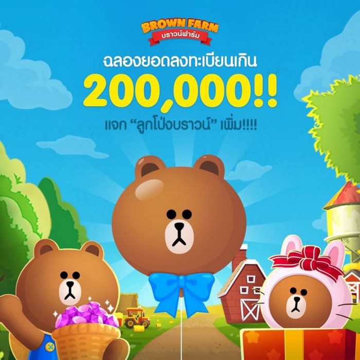 สุดแรง LINE brown farm เปิดลงทะเบียนล่วงหน้าวันเดียว ยอดทะลุ 200,000 ID