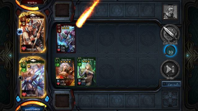 การ์ดจะโจมตีเฉพาะการ์ดด้านหน้าตัวเองเท่านั้น (ยกเว้นมีสกิลพิเศษ) แต่หากด้านหน้าไม่มีการ์ดศัตรูก็จะโจมตเข้าฮีโร่โดยตรง เมื่อการ์ดทุกใบโจมตีเสร็จ ก็จะเปลี่ยนไปเป็นเทรินฝั่งศัตรู