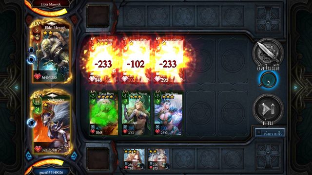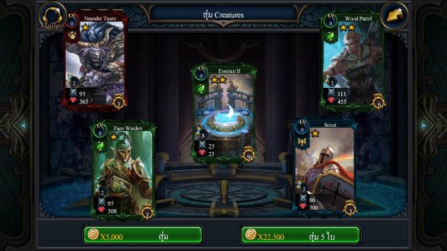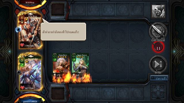 สำหรับการ์ดครีเจอร์จะใช้สกิลออกมาก่อนเริ่มโจมตีแบบอัตโนมัติเช่นกัน เช่น Meteor ,Heal ,Cloudburst , Incinerate