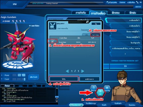 2. คลิกที่ปุ่ม “คลัง” เลือกแท็บ “รายการของ” แล้วติ๊กเครื่องหมายถูกหน้าจดหมายจาก Event SDGO จากนั้นคลิกที่ปุ่ม “ได้รับ” ก็จะได้รับเงินทันที