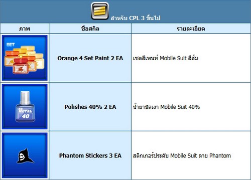 แจกฟรีไม่อั้น สำหรับ Pilot ที่เข้าร่วมทดสอบเล่นเกมส์ออนไลน์ในช่วง Closed Beta และพัฒนาฝีมือจนได้เลื่อนตำแหน่งถึงระดับยศ Corporal ขั้น 3 (CPL 3) เท่านั้น รับไอเท็มรางวัลไปใช้ฟรีทันที เมื่อ Login เข้าเกมส์ในช่วง Open Beta ดังนี้