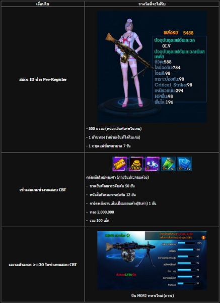 – ไอเท็มรางวัลจากกิจกรรมนี้จะสามารถกดรับได้เมื่อตัวเกมเปิด Open Beta แล้ว. โดยผู้เล่นจะต้องทำการลงทะเบียนรับรางวัลที่หน้าเว็บไซต์หลักเมื่อตัวเกมเปิด Open Beta สำหรับรายละเอียดและวิธีการทางทีมงานจะทำการอัพเดทในภายหลัง