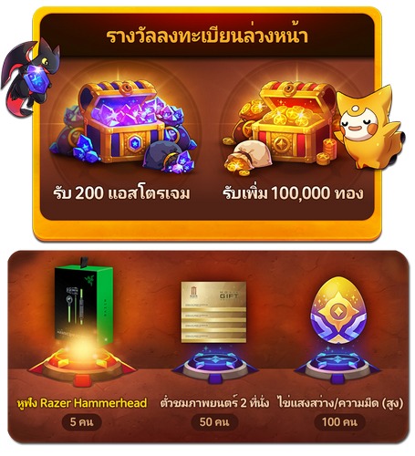 มาพร้อมกับกิจกรรมสุดพิเศษ แจกไอเท็มในเกมเมื่อยอดลงทะเบียนถึงที่กำหนด ยิ่งลงทะเบียนมาก ยิ่งได้มาก !