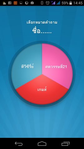 หลังจากที่เพื่อนยอมรับคำท้าแล้ว หรือสุ่มหาคู่ต่อสู้เล่นด้วยกันได้แล้ว เราจะเริ่มเกมประลองปัญหากัน โดยแต่ละฝ่ายจะผลัดกันเลือกหมวดคำถามเพื่อชาเล้นกับอีกฝ่าย โดยหมวดต่างๆที่ให้เลือกจะถูกสุ่มออกมา 3 หมวด ซึ่งที่มี ประวัติศาสตร์ เพลง ละคร เกมส์ บันเทิง วิทยาศาตร์ สังคม กีฬา เยอะแยะมาก ขึ้นอยู่กับว่าจะสุ่มหมวดไหนออกมาให้เลือก