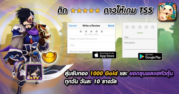 เกมส์ใหม่ TS5 Legend Mobile เปิดให้บริการแล้ววันนี้ 15 มีนาคม 2560 เวลา 15.00 น. พร้อมทั้ง 2 Store ทั้ง Android และ iOS รวมไปถึง PC ที่สามารถ Download ได้ทางหน้าเว็บไซด์ http://ts5.in.th/home/home แล้วมาร่วมมันส์ไปกับขุนพลในตำนานของ TS5กันเลย