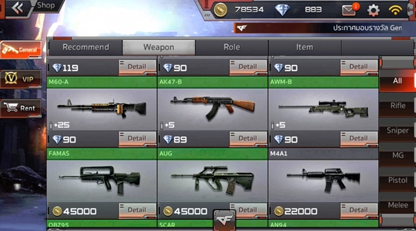 – VIP เกมนี้ก็แค่แถมของและซื้อปืนพิเศษ ไม่มีผลใดๆ กับสเตตัสตัวละคร