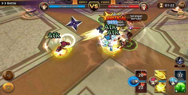 ระบบ 3:3 Battle เป็นการต่อสู้กับฝ่ายตรงข้ามโดยการผสมผสานฮีโร่ 3 ตัวกับสัตว์เลี้ยง โดยการแข่งขันจะถูกแบ่งเป็น League เพื่อให้ผู้เล่นได้เจอกับคู่ต่อสู้ที่มีฝีมือสูสี ซึ่งของรางวัลใน League ที่สูงขึ้นก็จะมีมากขึ้นด้วย โดยในโหมดนี้ผู้เล่นสามารถกดต่อสู้แบบออโต้เพื่อให้สามารถต่อสู้ได้อย่างรวดเร็วด้วย