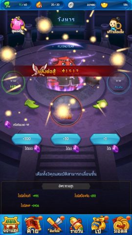 การสู้ : ตัวละครเราจะทำการโจมตีอัตโนมัติ ตามความเร็วของตัวละคร