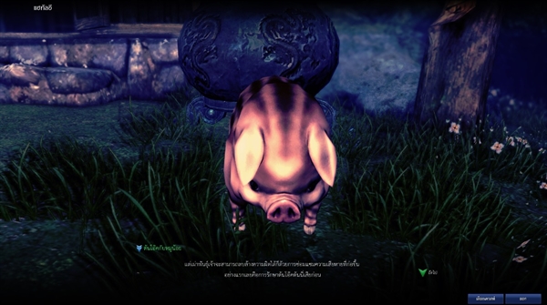 สังเกตไหมครับว่าทำไมพวกหมูๆ ถึงไม่แตกตื่นและช่วยเราในการล่อความสนใจพวกลิทธิไทกะ ? จะมีหมูตัวหนึ่งที่เป็นหมูสีนํ้าตาลตัวเล็กๆ ออกคำสั่งกับหมูตัวอื่นๆ ถ้าเกิดจำไม่ผิด คุณอาจจะเห็นภาพร่างทรงของเทพเจ้าแห่งปฐพีที่มาในรูปแบบของหมู….. หรือว่า ….. .??