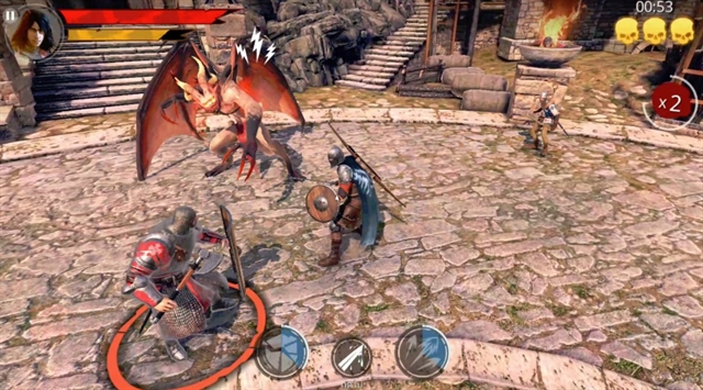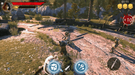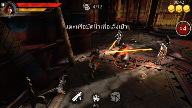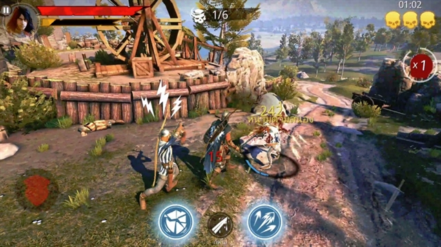 แต่ทีนี้ ถ้าตัวละครเดินไม่ได้ เกมจะให้เรารับมือยังไง ? คำตอบก็คิอ นอกจากการโจมตีและป้องกันแล้ว ในเกมยังมีท่าโจมตีอื่นอีก เช่น การยิงธนู ซึ่งเป็นการยิงไปแล้วก็วิ่งเข้าไปหา (ทำได้โดยการปัดหน้าจอ) และรวบรวมเกจสกิล แล้วก็กดสกิลโจมตีใส่อีกฝ่าย ซึ่งมีท่าโจมตีตั้งแต่โจมตีหนักหน่วง หรือทำให้อีกฝ่ายกระเด็นเป็นหมู่คณะ ตัวเกมนั้นอ่จจะมีศัตรูไม่ได้เยอะเมื่อเทียบกับ Batman หรือ มอร์ดอร์ แต่ก็เรียกว่าให้อารมณ์คล้ายคลึงกันเลยหละครับ