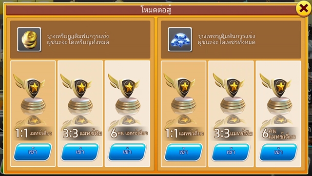 โหมดต่อสู้ ที่จะวางเงินในเกมหรือเพชรเป็นของเดิมพัน และผู้ชนะจะกวาดเงินหรือเพชร มีให้เลือกว่าจะแข่งแบบไหน ระหว่าง 1 – 1 , 3 ต่อ 3 และ 6 คนแข่งรวดเดียว มีผู้ชนะแคคนเดียวเท่านั้น